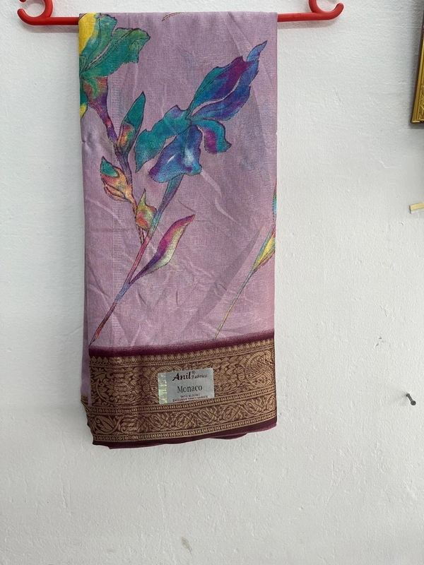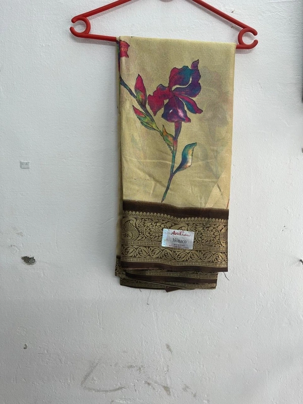 Beige Mixed Saree with Floral Digital Print & Zari Border