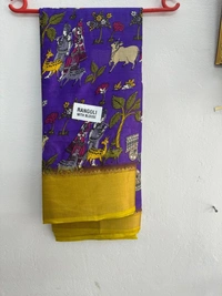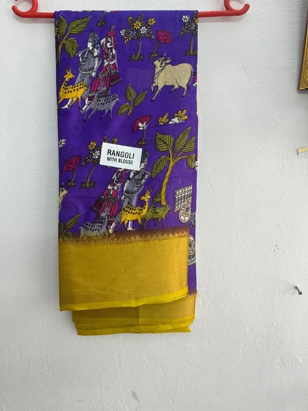 Georgette Rangoli Print Sarees with Folk Motifs & Contrast Border (With Blouse)