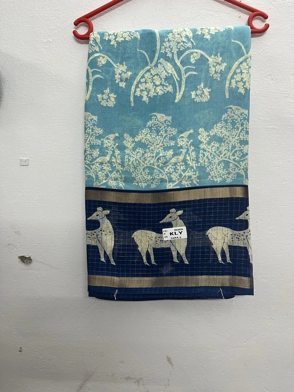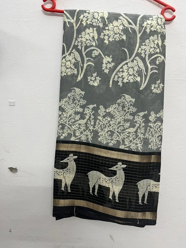 Printed georgette Sarees with Nature-Inspired Motifs & Animal Border
