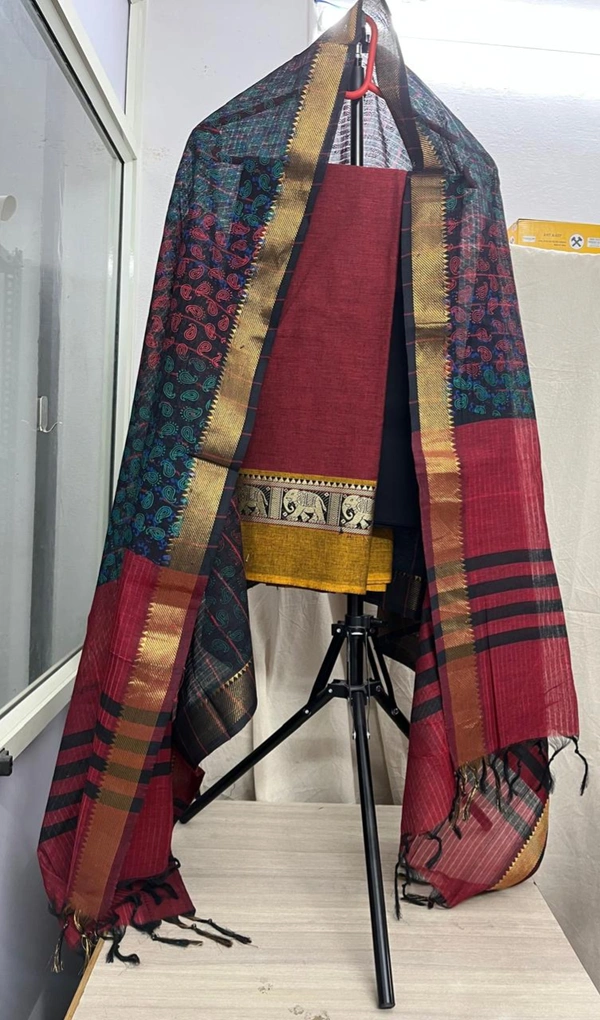 The set features a beautifully detailed border adorned with charming elephant motifs, symbolizing strength and grace. Paired with a printed dupatta, it adds a touch of sophistication and versatility to your wardrobe. Made from premium-quality pure cotton, this outfit ensures breathable comfort and long-lasting durability.