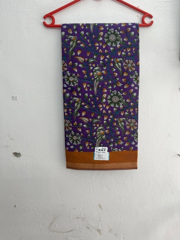 Royal Purple Cotton Silk Mixed Saree with Kalamkari Bird Motifs