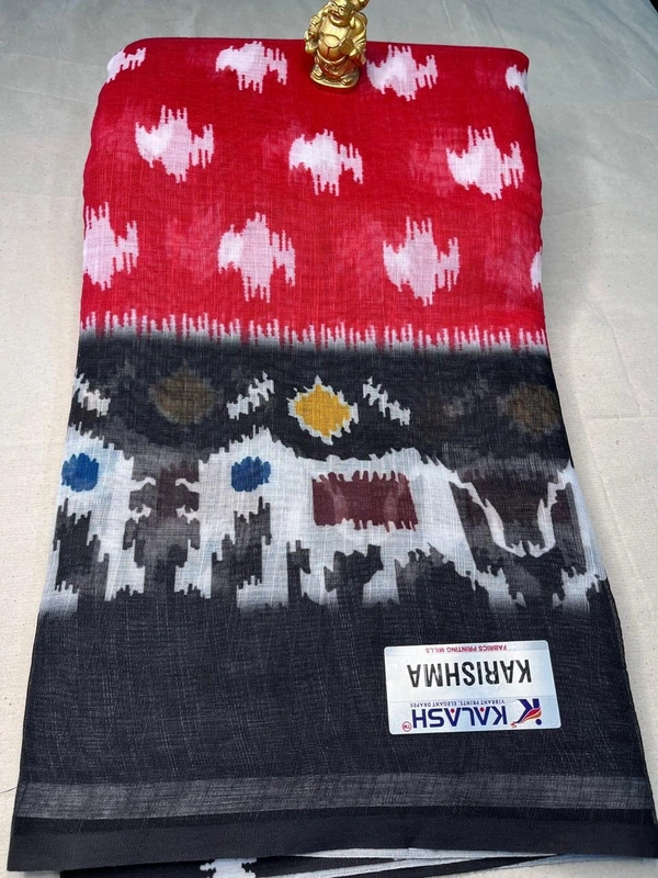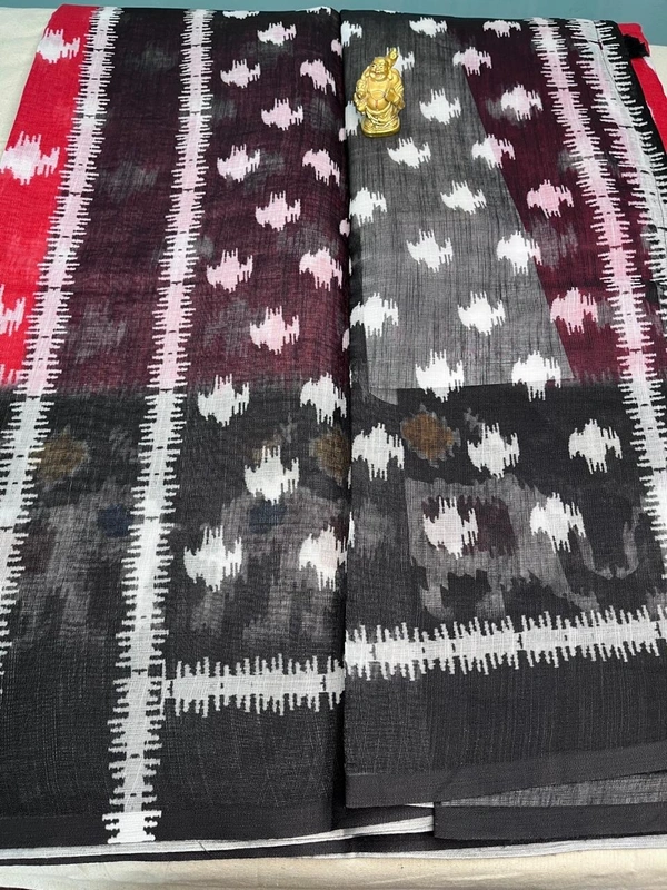 ❤️🖤 3️⃣ Red & Black Ikat Cotton Saree with Village Pattern